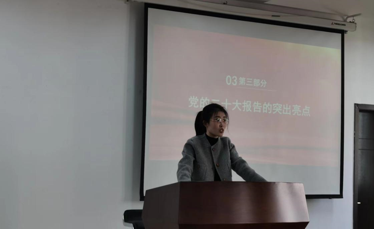 3月13日下午,学院邀请马克思主义学院姜晓静老师进行党的二十大宣讲,学院全体教师参加学习。