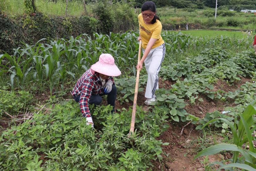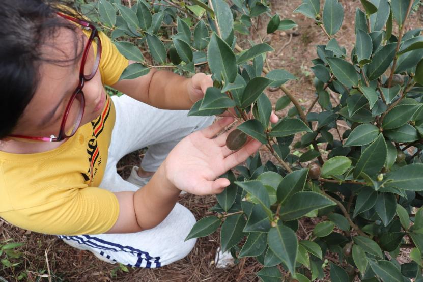 图为实践队员观察经济作物果实,体悟黄冲村村民的日常生活。中国青年网通讯员 曹杰 摄