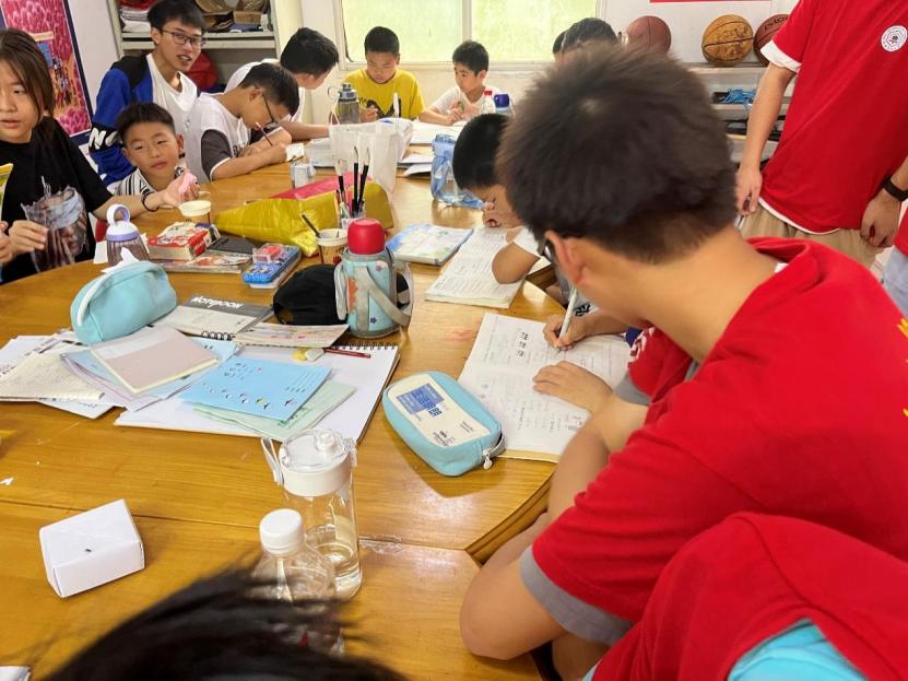 图为实践队员正在进行教育辅导工作。中国青年网通讯员 史子慧 摄