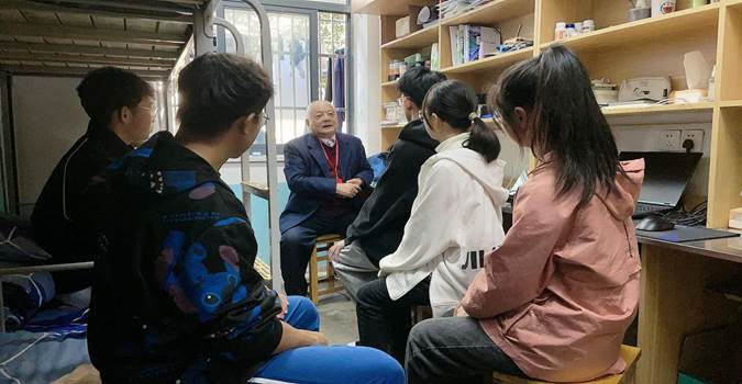 为更好地帮助2022级新生适应大学生活,11月5日下午校关工委退休老教师代表封定一教授走进管工学院2022级新生宿舍,与新生们进行了热烈交谈。学院新生辅导员、部分学生代表参加了本次活动。