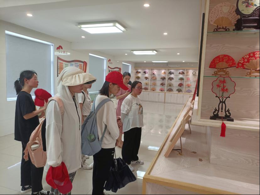 在明德公司,实践队员们走进明德折扇的展览馆与制作车间,并通过明德折扇第五代传人王亚凌的讲解,进一步了解了明德折扇制作工艺。在唐诗编织厂,唐氏竹编传承人唐圣丽带实践队员们参观了唐氏竹编的展览馆,并深入竹编工作车间,观摩如何将一颗毛竹变成可以编织的竹篾。在两个非遗文化企业手工艺人的手中,傲然挺立的竹子,经过一系列工序做成一件件物件。其手艺之巧妙、技艺之精湛让实践队员们体悟到了传统非遗文化的魅力。