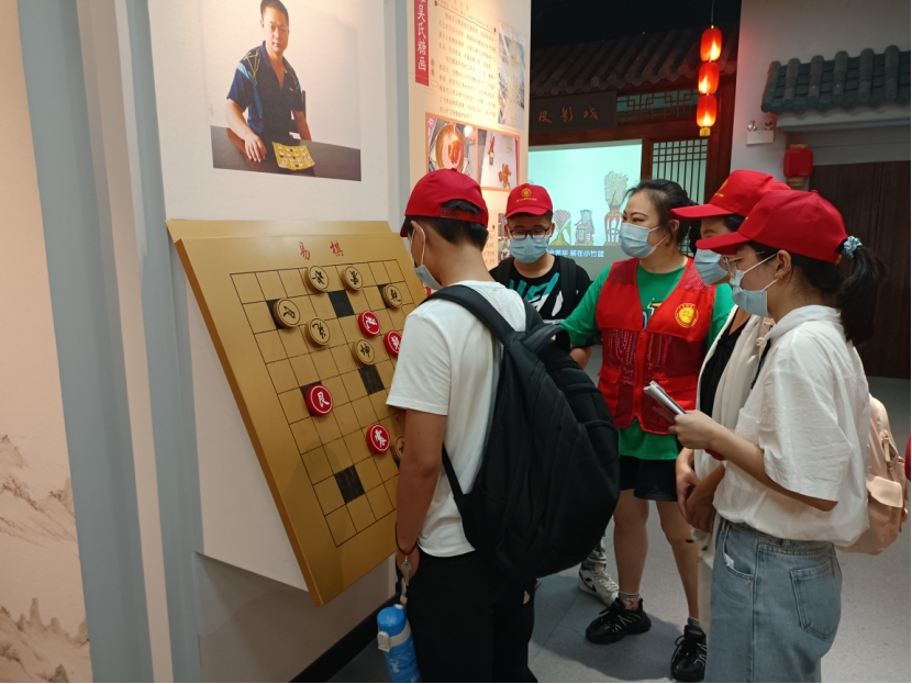 图为工作人员为实践队员讲解广德西坞马灯文化。