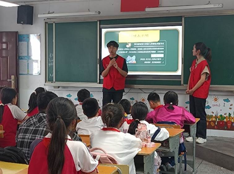 为持续深入开展《中华人民共和国民法典》普法宣传工作,加强学生自觉遵法学法守法用法意识,弘扬法治精神。5月28日下午,管工学院青年志愿者协会前往马鞍山市乔山社区冯桥小学,为该校的学生带来了一场生动有趣的《中华人民共和国民法典》宣讲课。