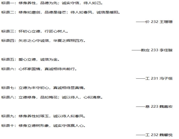 同学们积极参与,经过综合评选,现展示出本次优秀标语作品: