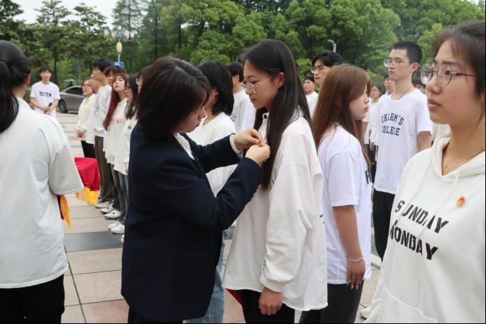 仪式在庄严的国歌声中拉开帷幕。赵玉婷宣读了青马工程开班决定及新发展团员名单,与会教师为新团员颁发了团徽团章和团员证。新团员代表魏嘉宏发言,他代表所有新团员向团组织郑重承诺,将时刻牢记团员的使命和责任,以实际行动践行团员誓言,以更加优异的成绩回报团组织。新团员们在团旗下庄严宣誓。