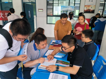 在当涂一中、无为中学、无为一中、无为二中、芜湖一中、芜湖县一中、郎溪中学等学院负责的片区中学,学院招生宣传队伍全体老师积极向考生、家长全面介绍我校校史校情、招生政策、学科建设、人才培养、就业去向、校园活动等内容。招生现场氛围热烈,对于家长和考生关心的我校历年分数、招录位次、特色培养项目、转专业政策等问题进行了耐心解答与交流;同时学院通过QQ群、微信等社交媒体平台,为考生和家长提供实时咨询解答等个性化服务,不仅为考生专业选择及职业生涯规划提供了参考,也帮助考生理清思路,对就业前景有了更清晰的认识。