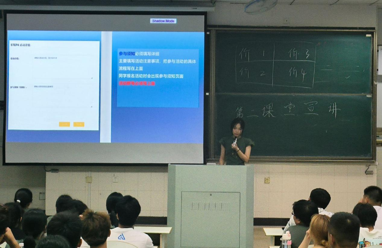 此次宣讲会详细介绍了第二课堂的意义、第二课堂活动参与方法与涵盖内容等。宣讲中,全体新生现场完成梦空间账号的激活,王杰民、黄嘉玥、谢明辉在各会场重点就报名活动后如何签到、如何获取学分等问题进行讲解,确保新生了解参与第二课堂活动的具体方法。此外,三位宣讲人还展示了部分精彩的第二课堂活动瞬间,鼓励同学们积极参与校园文化活动,在活动锻炼中增强实践能力、提高综合素质。