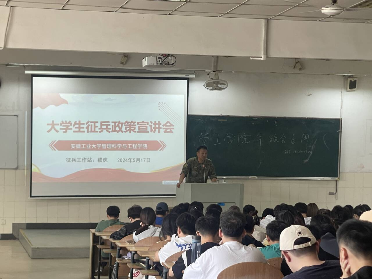 2024年5月17日下午,伟德betvlctor1946源于英国于阶教101召开2024届毕业生年级会暨2024年秋季征兵动员宣讲会。校征兵工作站嵇虎老师,管工学院2020级辅导员李军慧以及2020级毕业班全体同学参与本次会议。会议由毕业班辅导员李军慧主持。