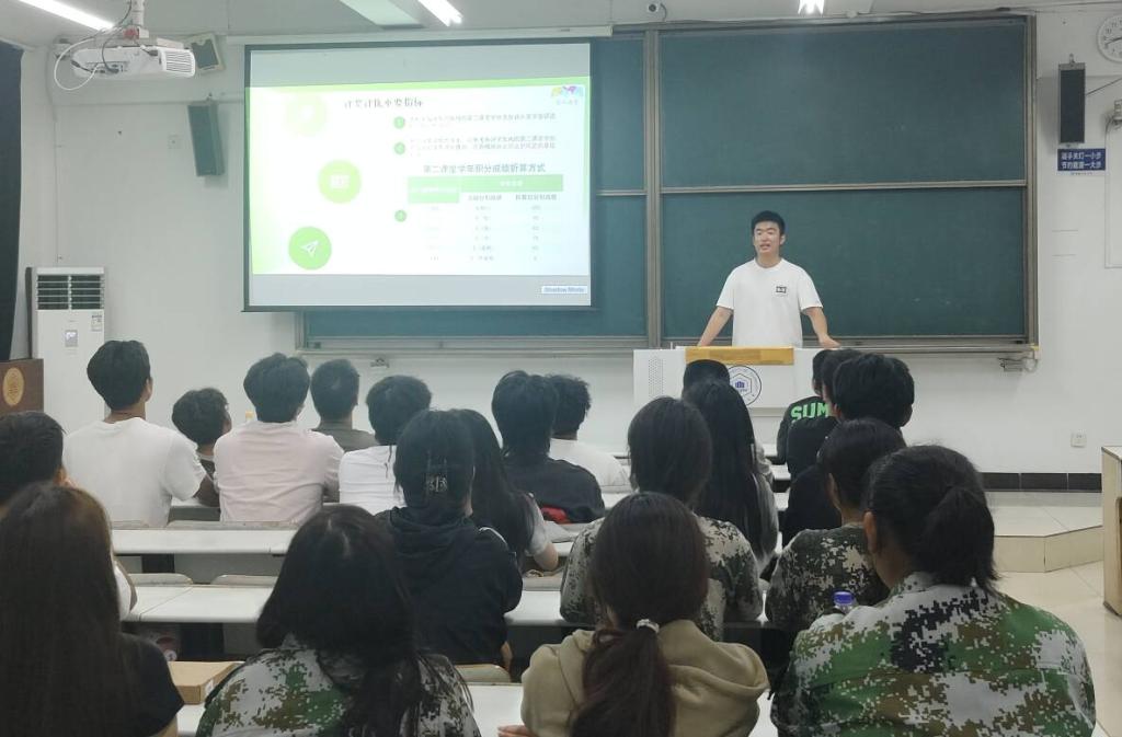 宣讲中,徐子默从“第二课堂为何重要”切入,重点介绍了第二课堂的修读要求、奖学金评选中的权重占比,明确第二课堂的“必修”属性。随后,详细介绍了学生在思想成长、文体活动等五大模块的毕业学分要求,积分与成绩的对应关系,帮助新生建立规划意识。针对新生对参与途径的陌生感,宣讲现场演示了“到梦空间”的基本操作流程,涵盖账号激活、活动报名、签到及请假等环节,切实降低参与门槛。