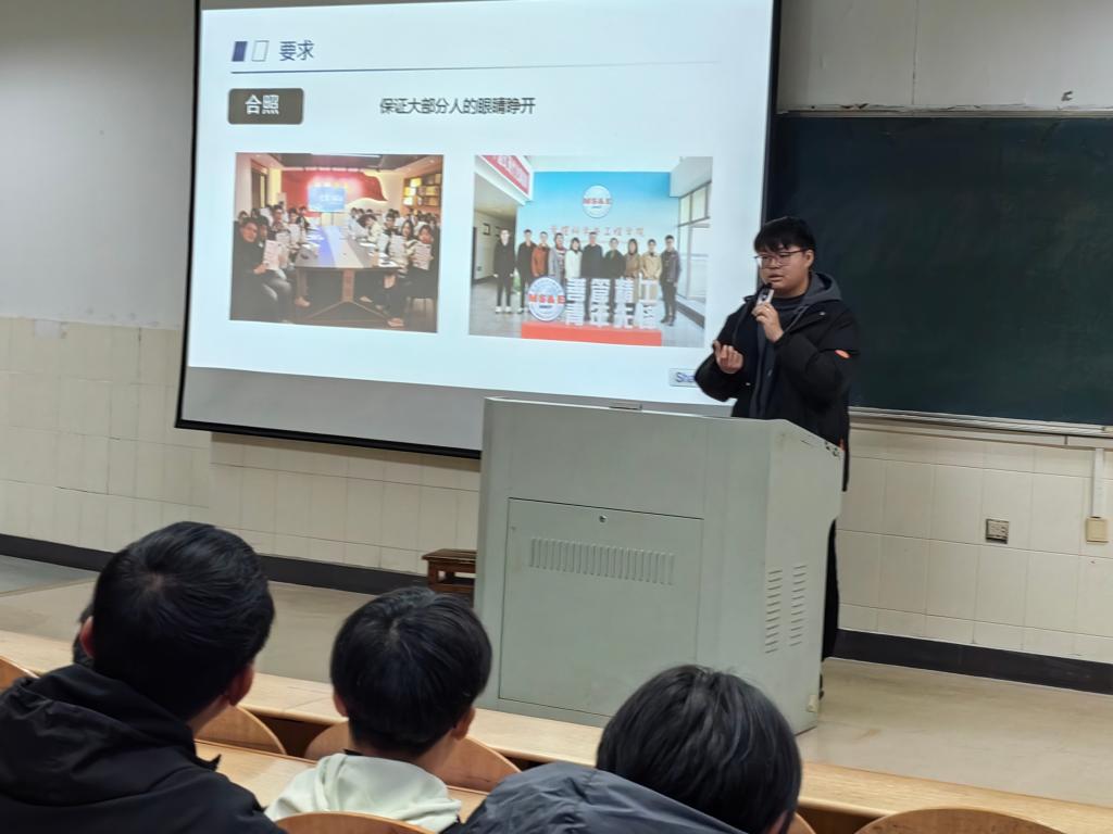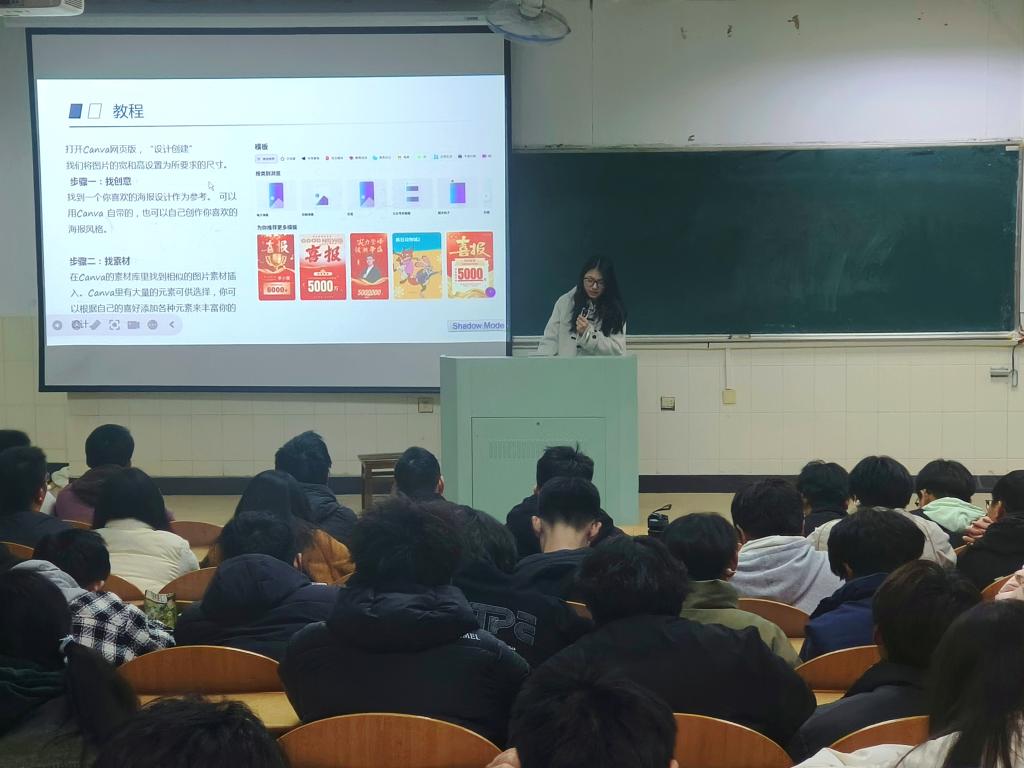 会上,编辑部司佳妮介绍了新闻稿的基本要素与撰写要领,指出新闻稿应遵循的基本原则,并以案例分析的方式列举稿件撰写中的常见误区及对应修改建议,提升学生对新闻写作的规范认识。记者团李少斌从合影、观众、活动全景与人物特写四类常见场景入手,重点讲解了照片拍摄的相关要求,并现场演示拍摄方法。新媒体部张梦缘聚焦图文排版,从排版设计的六大要素出发,强调图文推送要遵循色调统一、主次分明、信息清晰、风格简约的核心原则,并结合学院微信公众号的推送内容,重点分享了色彩搭配技巧。