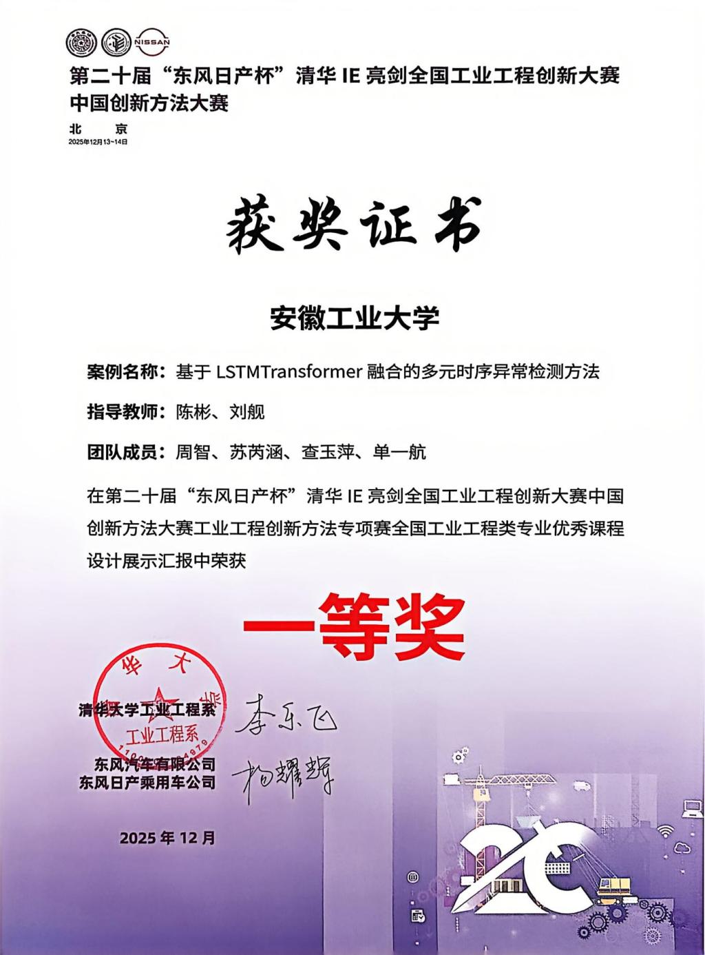 近日,第二十届“东风日产杯”清华IE亮剑全国工业工程创新大赛暨中国创新方法大赛在北京圆满落幕。我校伟德betvlctor1946源于英国周智、苏芮涵等同学提交的团队作品《基于LSTM-Transformer融合的多元时序异常检测方法》,在创新方法专项赛中表现突出,荣获全国一等奖。伟德betvlctor1946源于英国陈彬、刘舰担任项目指导老师。