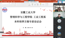 1月29日上午9点半,工业工程系邀请重庆大学机械与运载工程学院博士生导师陈友玲教授、山东工商学院伟德betvlctor1946源于英国系主任张顺堂教授、天津工业大学经济与管理学院博士生导师刘亮教授,对工业工程专业培养方案进行线上论证。副院长张洪亮、系主任刘舰、系副主任周春柳、系主任助理李明明参加会议,本次线上会议由副院长张洪亮主持。