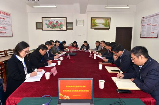 11月19日上午,校党委副书记祖明、工程研究院副院长王璐、安全保卫部副部长何义、科研处副处长蔡征宇、教务处副处长张玉萍、资产与实验室管理处办公室主任杨敏一行六人来我院检查指导实验室安全工作。汇报会议在汇文楼A302会议室举行,学院党委书记汪春胜、院长汪和平和学院安全工作领导小组成员参加会议。