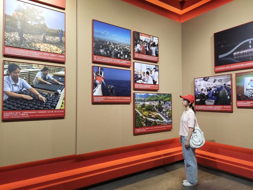 图为实践队员学习新中国成立后的繁荣与成就。