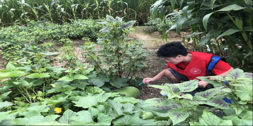 图为实践队员在查看农作物。