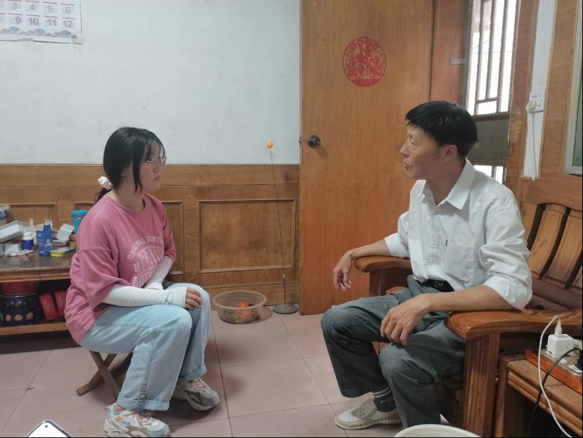 图为伟德国际bevictor1946管工学院赴岳西重温大别山革命路线团队队长李焱娜在采访当地一位老党员。