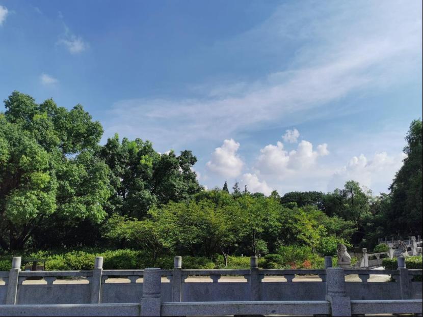 实践当日碧空万里,经过一个多小时的公交路程,实践队员们到达了蜀山烈士陵园,进入陵园后拾级而上。实践队员们先是来到了悼念广场,在广场西侧中央矗立着烈士纪念碑,碑上铸有邓小平题词的“江淮英烈永垂不朽”。纪念碑前时常放着游客们的鲜花,不时有人在碑前默哀。