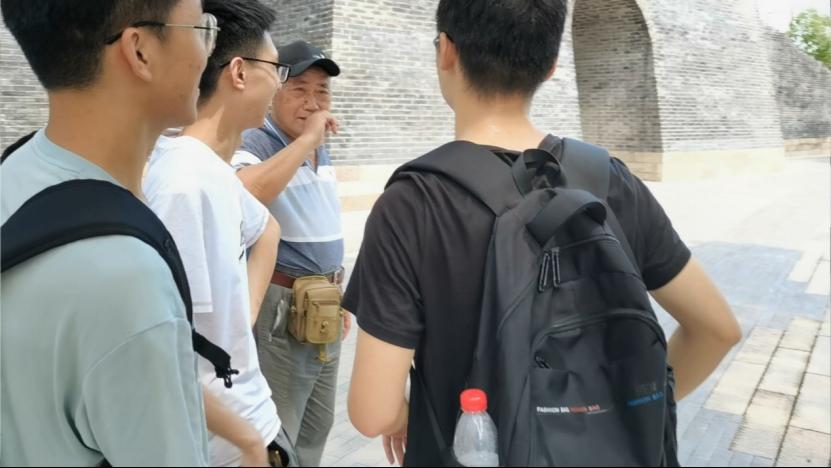 图为实践团队在嘉兴南湖一位老者为实践团员讲述一大路的故事。