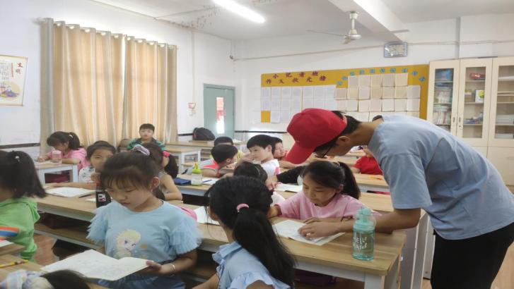 图为实践队员陈磊在向小朋友们答疑解惑。中国青年网通讯员