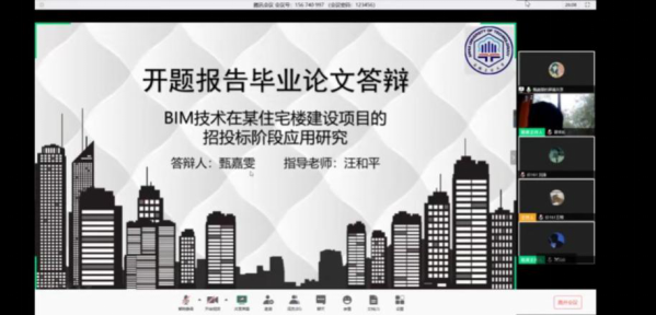 为了贯彻教育部“停课不停学”的工作指导精神,提高本科毕业设计的教学质量,2020年4月3日下午2点,我院工程造价系组织本专业学生在网上开展《本科毕业设计开题报告》线上答辩会。本次会议由王治国老师主持,工程造价系全体老师和2016级全体学生参加,会议通过腾讯会议平台进行。