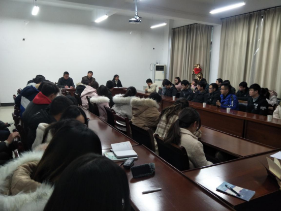 1月3日下午,我院在学院会议室召开研究生期末会议,我院全体在校研究生参会,学院科研(研究生)副院长汪和平教授、研究生秘书邹家华、研究生辅导员邢维迢参会。