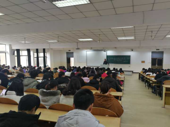 1月10日中午,我院在阶教101召开2017级期末年级会,该年级所有学生参加,2017级辅导员邢维迢主讲。