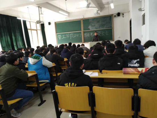 2月25日中午,我院在教D101召开2017级补考动员大会,本年级参加补考的近百名学生参加,17级辅导员邢维迢主讲。