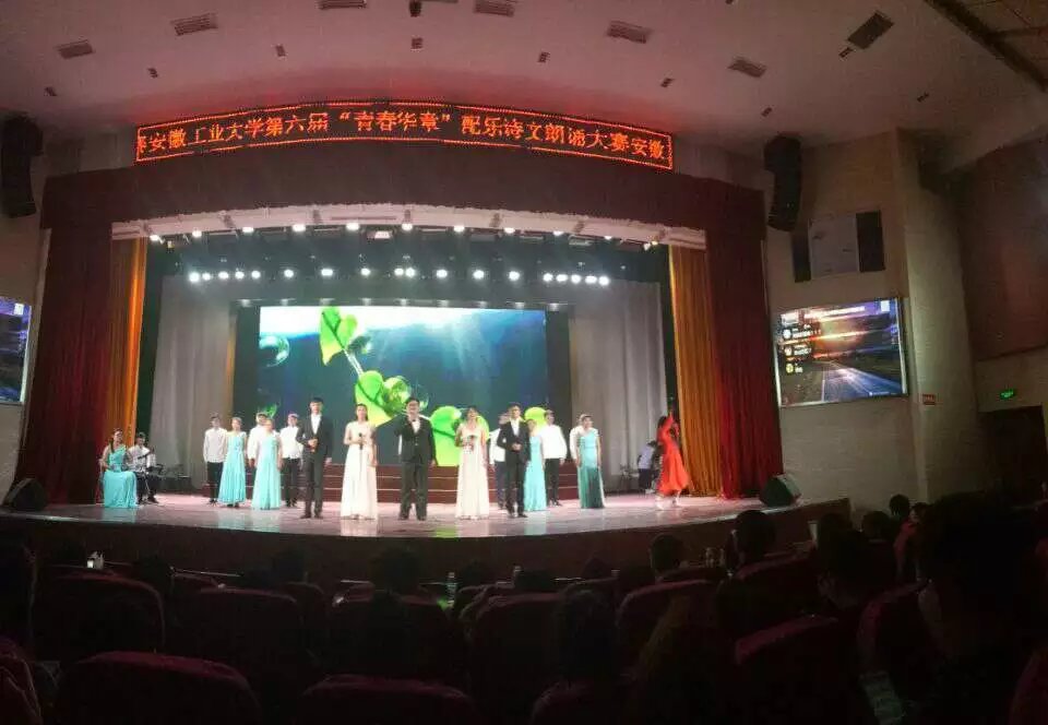 我院学生诗歌朗诵主题为《中国梦,七彩梦》。舞台上,息161班赵双双、王慧敏、流161班赵刘阳、张鑫等同学的朗诵激情昂扬,价161班雍雯菲等同学出色的二胡伴奏,工163杜婵同学优美的伴舞,让朗诵舞台设计精妙,表演形式独特。